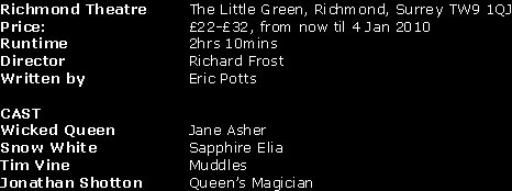 Sapphire Elia [star of the British TV musical drama Britannia High] is the best Snow White I have ever seen with an fabulous rendition of Boogie Wonderland. Her booming voice overshadows the rest of the cast from such a petite frame.